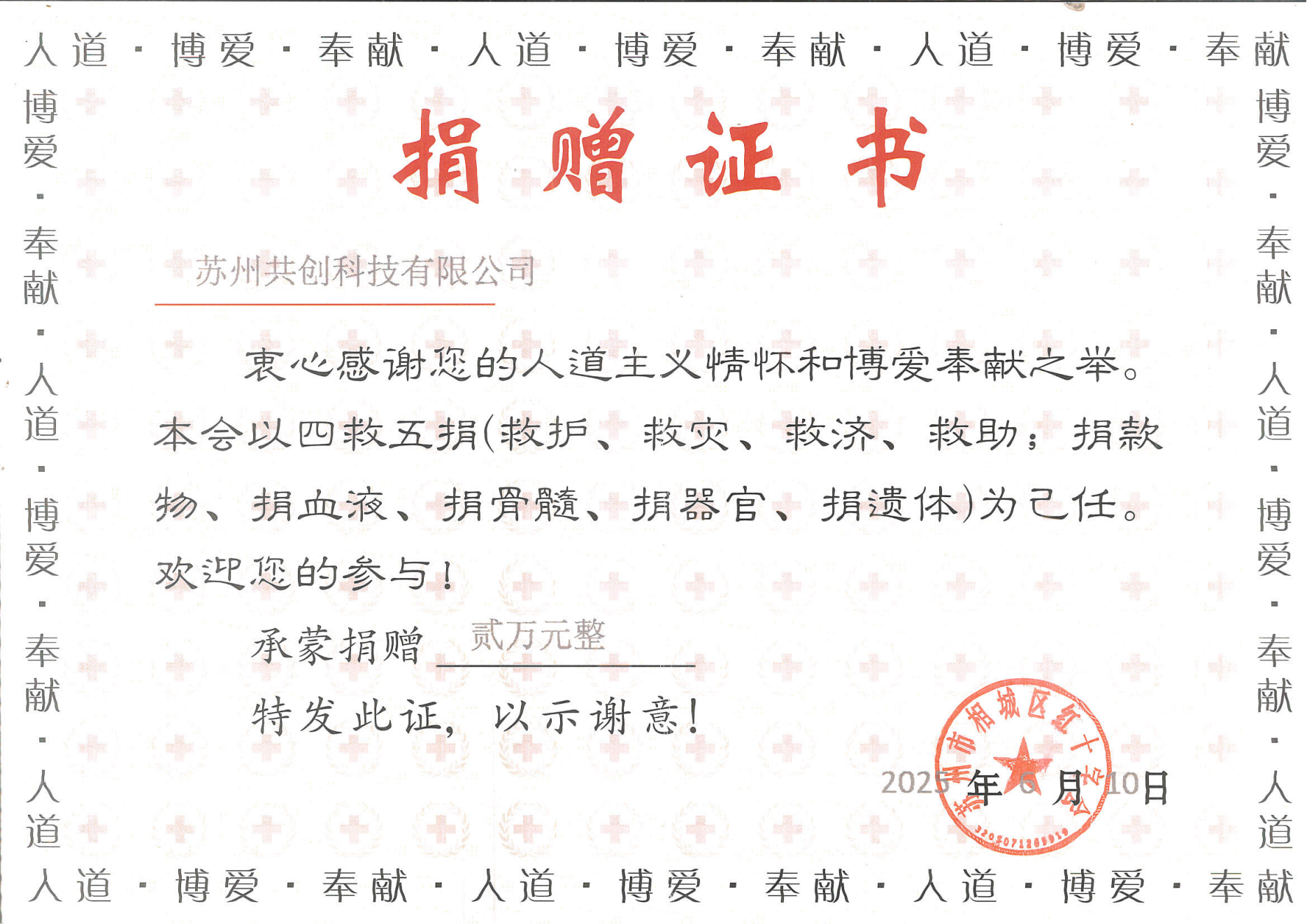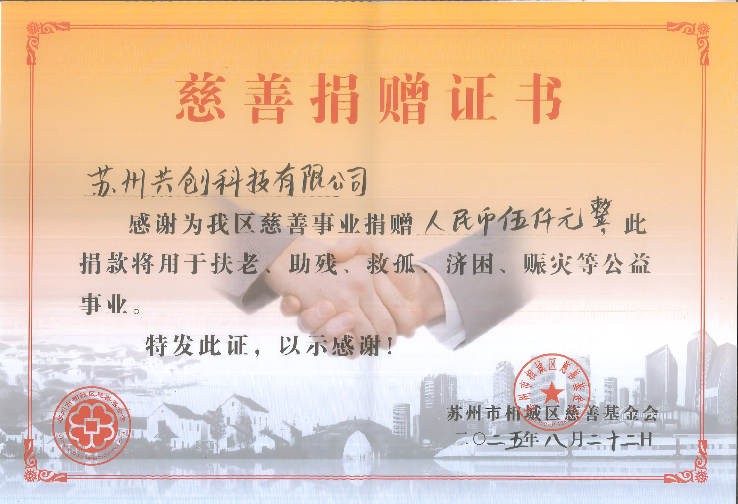一直以来,公司积极参与各类社会公益事业,多次向慈善基金会、红十字会等社会公益组织捐赠善款,并在2025年获得“优秀助残企业” 荣誉称号,得到了社会认可。这些荣誉既是对我们公益善举的肯定,更是激励我们持续践行社会责任的动力。